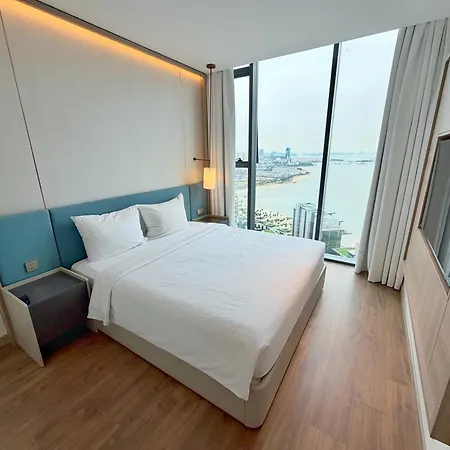 כל החדרים בדירת Luxury Apartment Super Cheap Price Ha Long כוללים נופים של ברכה.